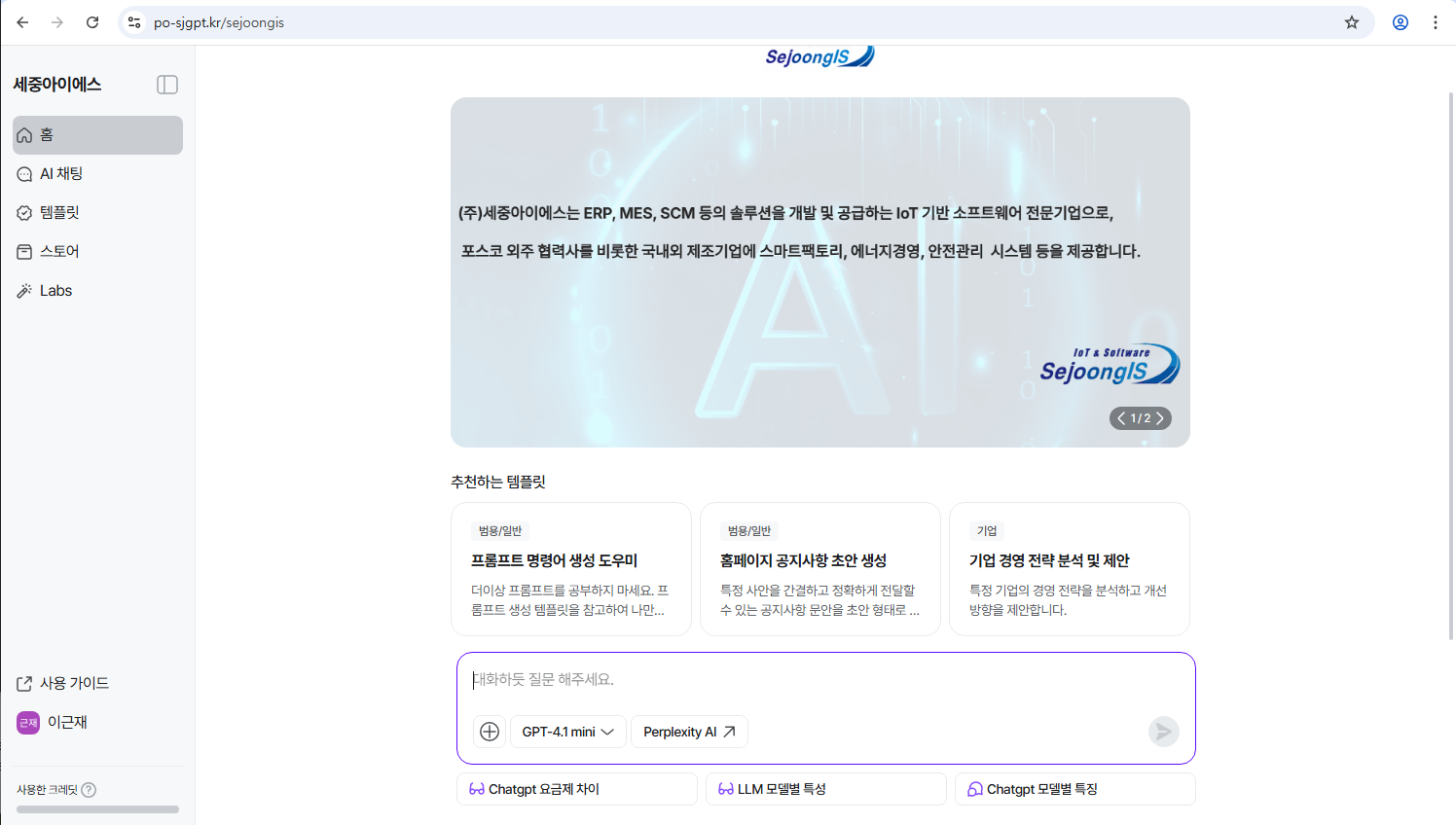 SJGPT는 ChatGPT 프롬프트 기반으로 신속한 업무처리와 의사결정을 지원하며, 정보자원의 효과적인 활용을 지원합니다.